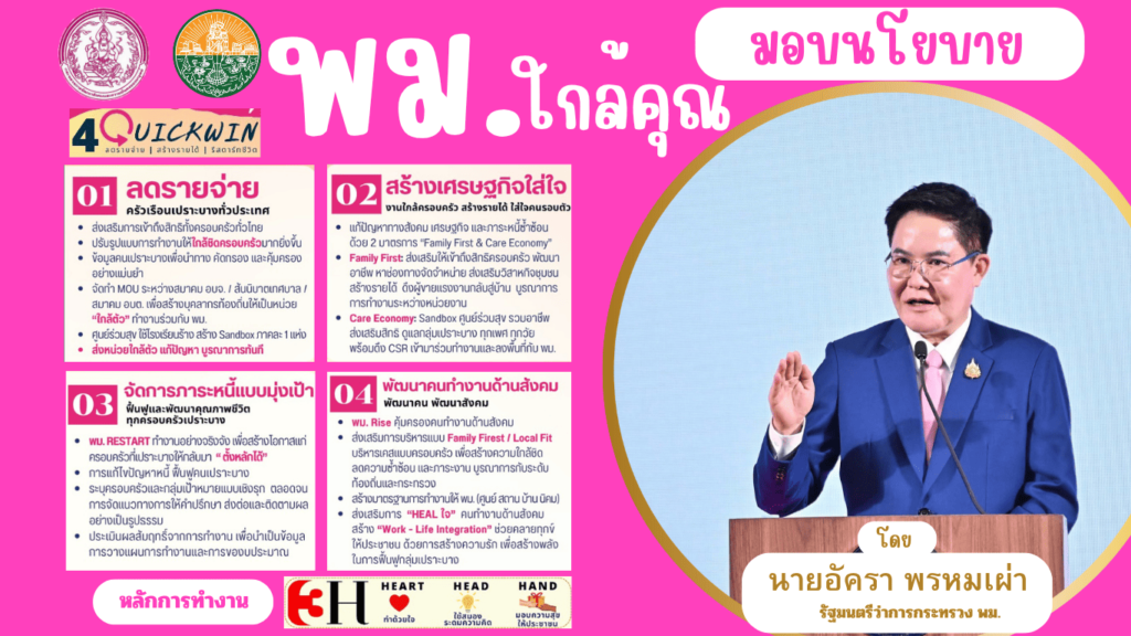 บทบาทหน้าที่ของกระทรวง พม. โดย สำนักงานพัฒนาสังคมและความมั่นคงของมนุษย์จังหวัดต้นแบบ